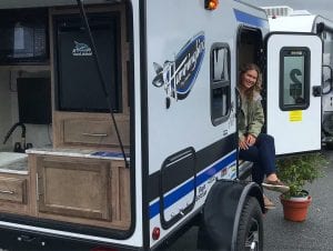 Our podcast sponsor, Jayco, debuted the Hummingbird 10RK last spring. We wrote about it in this blog post. It looked pretty awesome to us then, but stepping into one made us fall head over heels in love. Like I want to buy one for romantic weekend getaways without the kids. The 10RK manages to be cute, like most teardrop campers, but also rugged, unlike most teardrop campers.