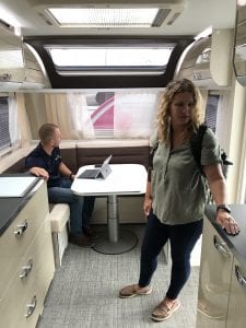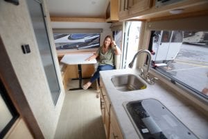 We have noticed a gap in the marketplace for years and we think NuCamp might be able to start filling it with this floorpan. The Avia boasts panoramic windows that bathe the interior with light, and lots of interior storage and counter space. The NuCamp rep sitting inside the Avian said that the owners often make visits to Europe in search of design cues from the industry there. The Avia’s clean lines and dashing interior sure do feel European. Camper Van trip anyone?