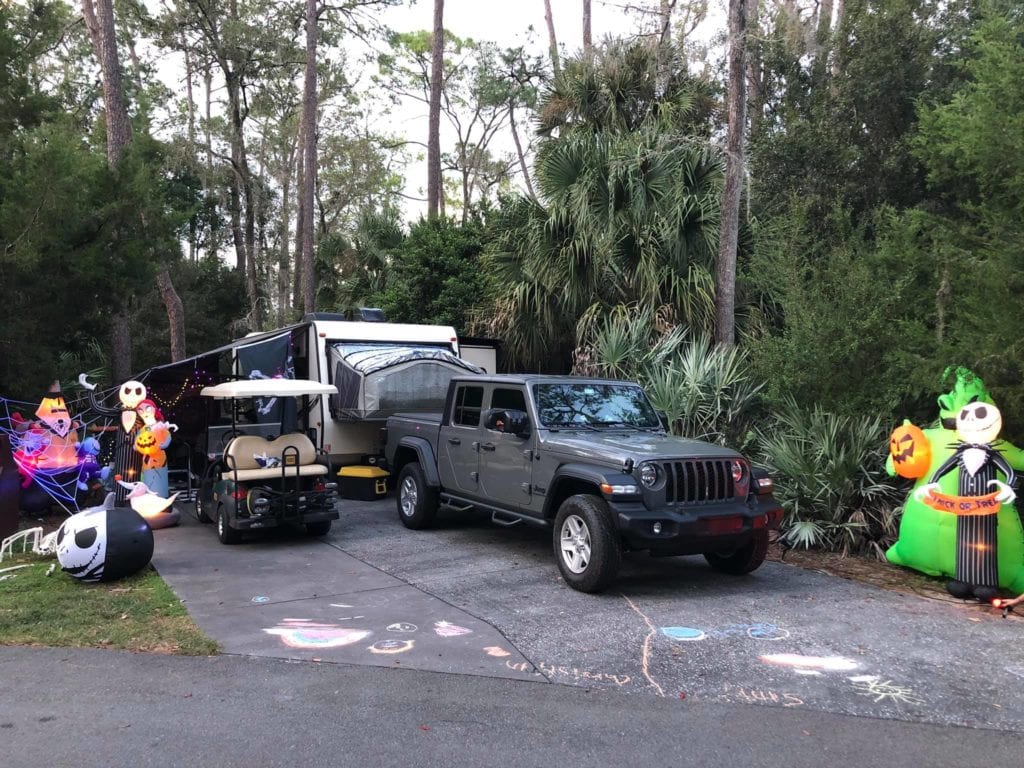 How does the Gladiator handle towing? Johann feels like it tows as well as his Tundra in many ways (with the proper weight distribution hitch). Since it’s a box towing a box, you will feel the wind a little more. Other than that, the power and smoothness were there. He never felt like the V6 was underpowered for his rig (a 5,000-lb. hybrid). He was honestly pretty skeptical going in, but he didn’t have any white-knuckle experiences, even when he hauled the Gladiator to Fort Wilderness (we are doubly jealous of that!).