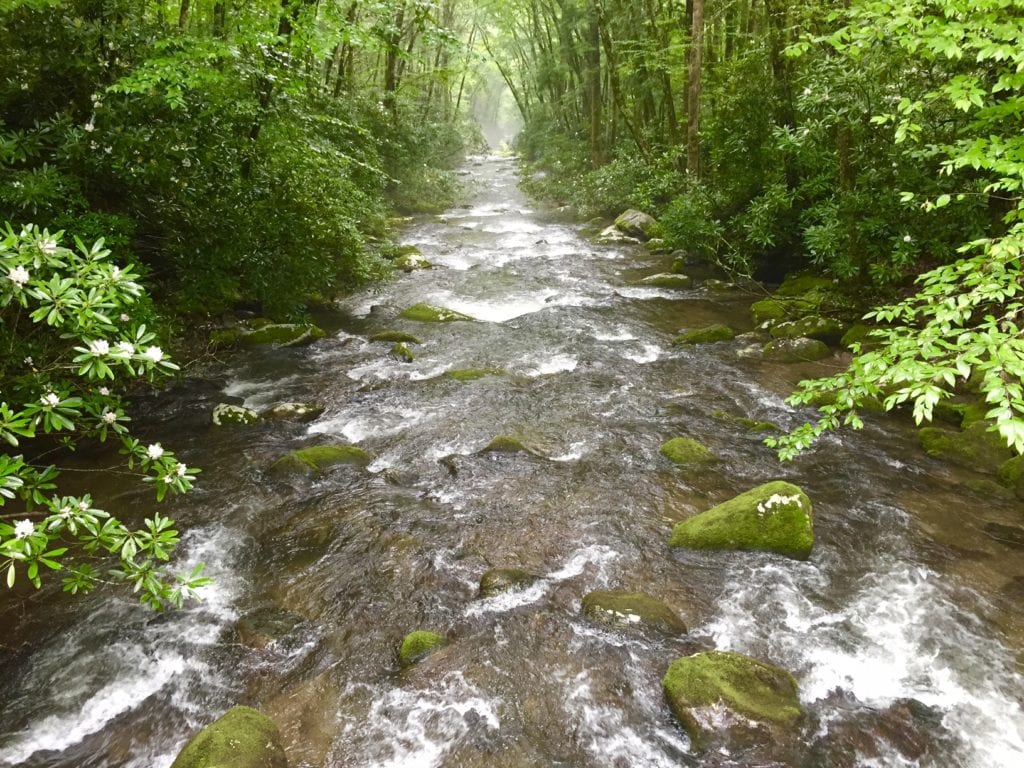 The Kephart Prong Trail is super easy to access from Newfound Gap Road, just about 7 miles from the Oconaluftee Visitor Center near Cherokee. Once you hit the trail, you’ll immediately cross a footbridge over the river.