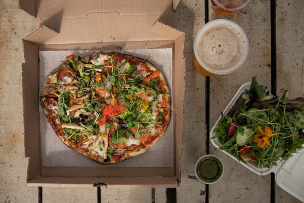- Onsite brewery and taphouse with a farm-to-table menu featuring brick-oven pizza, fresh vegetables, barbecue, and more (both the food and the beer earn rave reviews!)