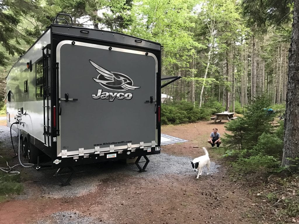 The first thing we noticed as we pulled into Amherst Shore Provincial Park and its thick evergreen forest was that the sites were very spacious. Our site (#2) was a drop dead gorgeous pull through with a gigantic amount of space. Our 34 foot toy hauler, and our F250 fit comfortable with room to spare. Max, Theo, and Wes actually had enough room for catch and wiffle ball right at our site.