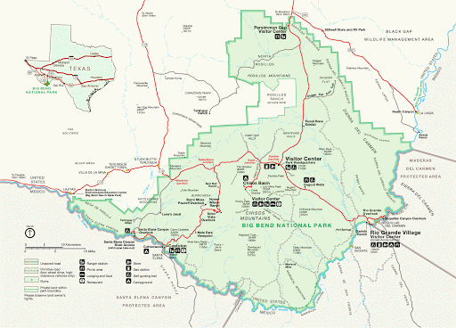 - The top (north) corner is Panther Junction Park Headquarters/Visitor Center