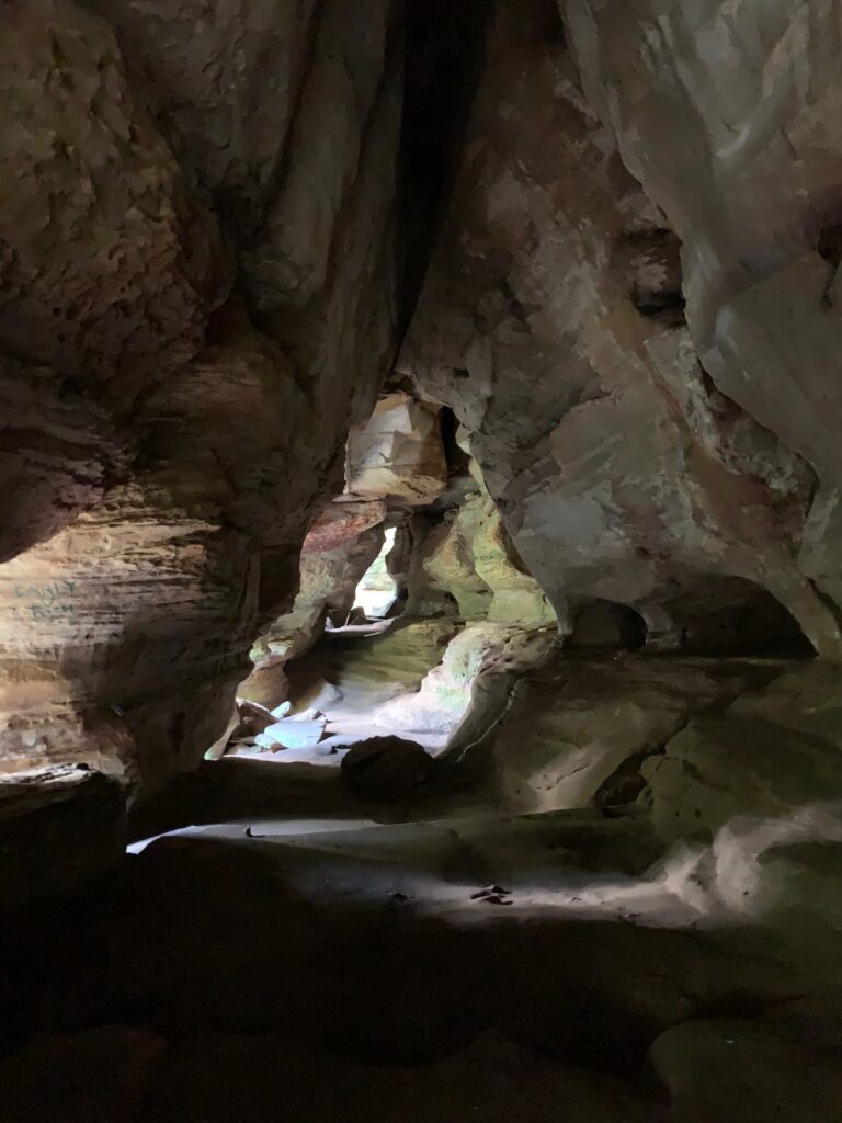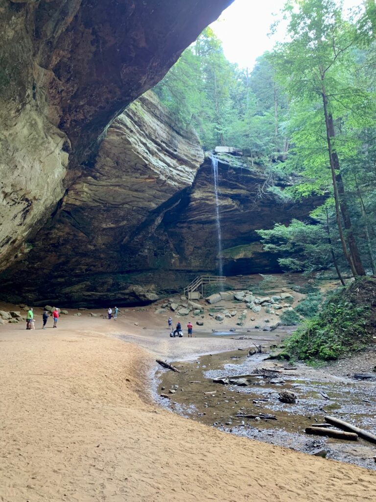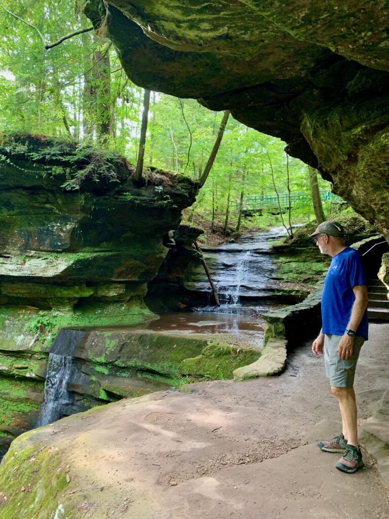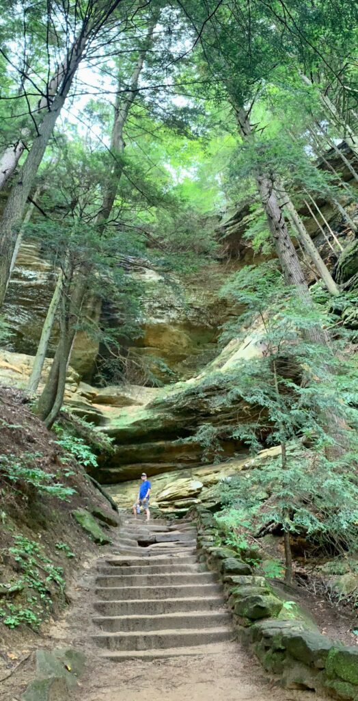 Old Man’s Cave is just one of many fascinating geological features that make Hocking Hills special. A 1.5 mile loop thru Old Man’s Cave and Lower Falls is a moderate hike, due to worn stone stairs and ducking under cliffs. It has super cool features like Devil’s Bathtub, Sphinx Head, and some tunnels.