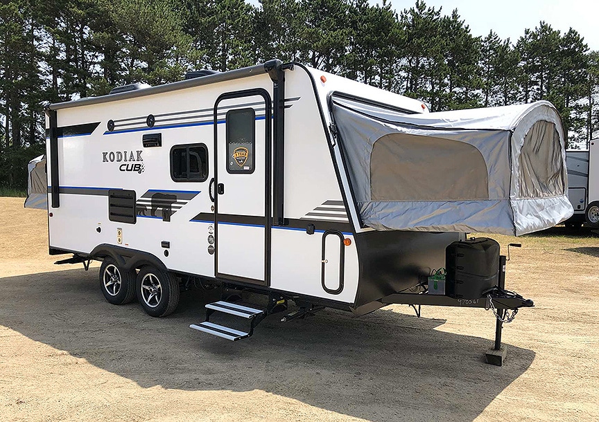 Families with more than two children or those who wish to take along guests often struggle to find a small trailer that has sleeping space for everyone. Hybrids are a great option in these situations. They are an upgrade from a pop-up camper since you do not have to set up the entire trailer, and you have a traditional trailer interior for everything except the beds.