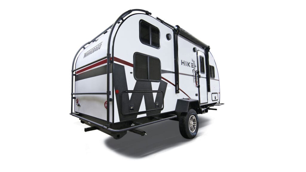 Winnebago’s new Hike line is built for off-the-beaten track adventures, with a lifted frame and sturdier tires and wheel wells. That noticeable exoskeleton is used to attach toys (you may use Thule racks or bungee cords to keep kayaks, bikes, and more snugly in place). Hop on the built-in steps to access normally out-of-reach locations.