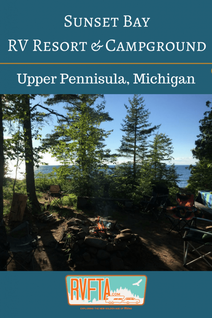 Sunset Bay RV Resort and Campground is in Allouez, Michigan in the part of the Upper Peninsula that stretches over Wisconsin in Lake Superior. This is a remote campground, serving as a great basecamp to Isle Royale National Park. Sunset Bay RV Resort and Campground is about 4 hours from both Duluth, Minnesota and Green Bay, Wisconson. It’s a full seven hours northwest of Traverse City.