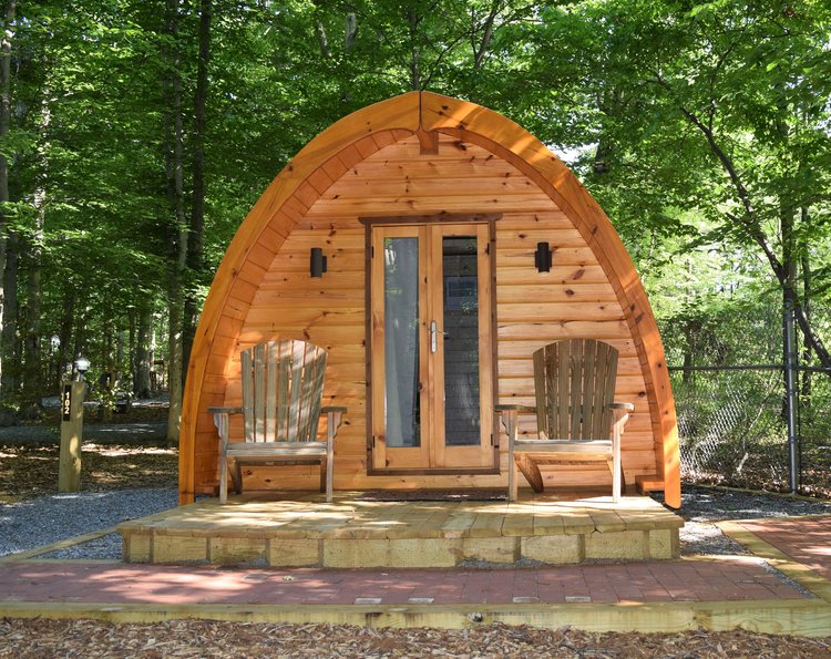 If you aren’t hauling a trailer or driving a motorhome, you’ll find tons of other options at Cherry Hill. Glamping pods, cottages, cabins, and even a yurt are available.