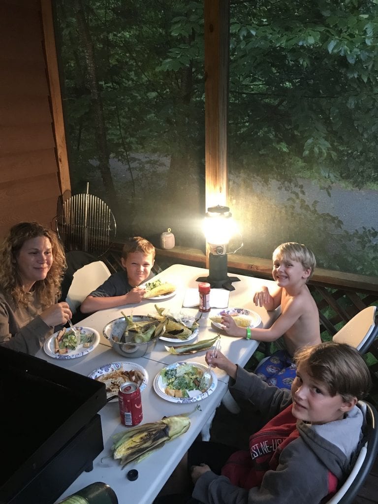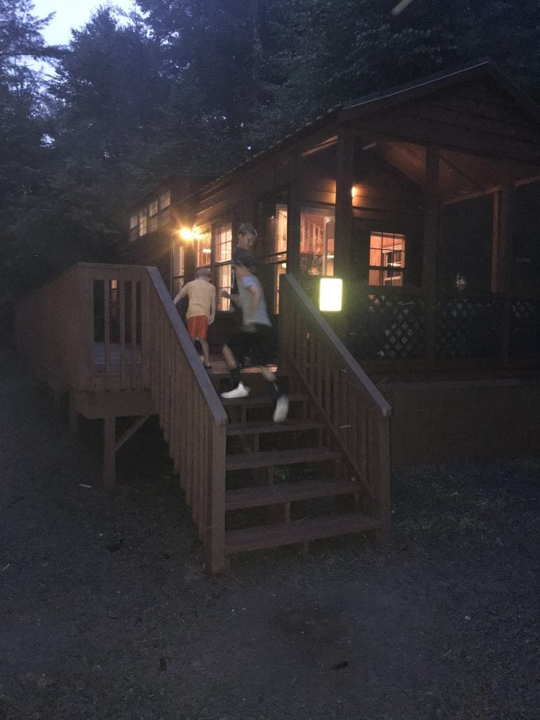 We actually stayed in a cabin at Jellystone Park at Birchwood Acres. We loved the entire section of the campground with the premium cabins with decks and screened in porches. This cabin where tucked away in the woods in a quiet section of the campground away from all of the amenities and family fun. It made for a perfect match. We had the quiet and privacy of a state park campground with all of the off the hook amenities of a Jellystone right around the corner. There were thick woods in between each of the cabins and lovely woods behind them. If you are looking to share a vacation with friends or family members without an RV it would be hard to think of a better campground!