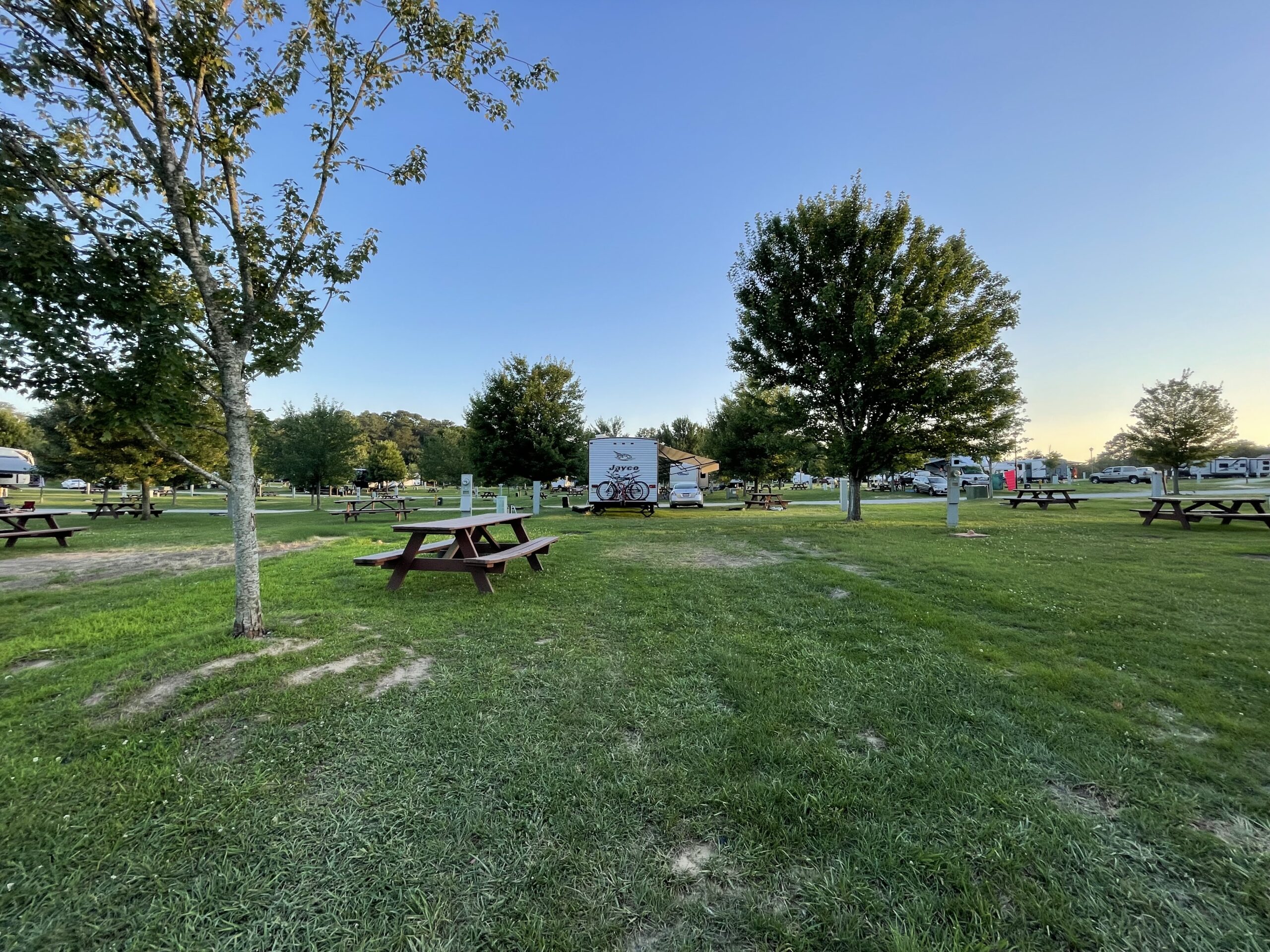 RV Sites were really nice here. They were fairly spacious with some shade and landscaping mixed in—they were all pretty even steven as well in terms of sizing. I liked the sites that backed up to the woods on the far side of the campground for some shade and more privacy. We enjoyed riding our golf cart up and down the rows and checking the RVs out.