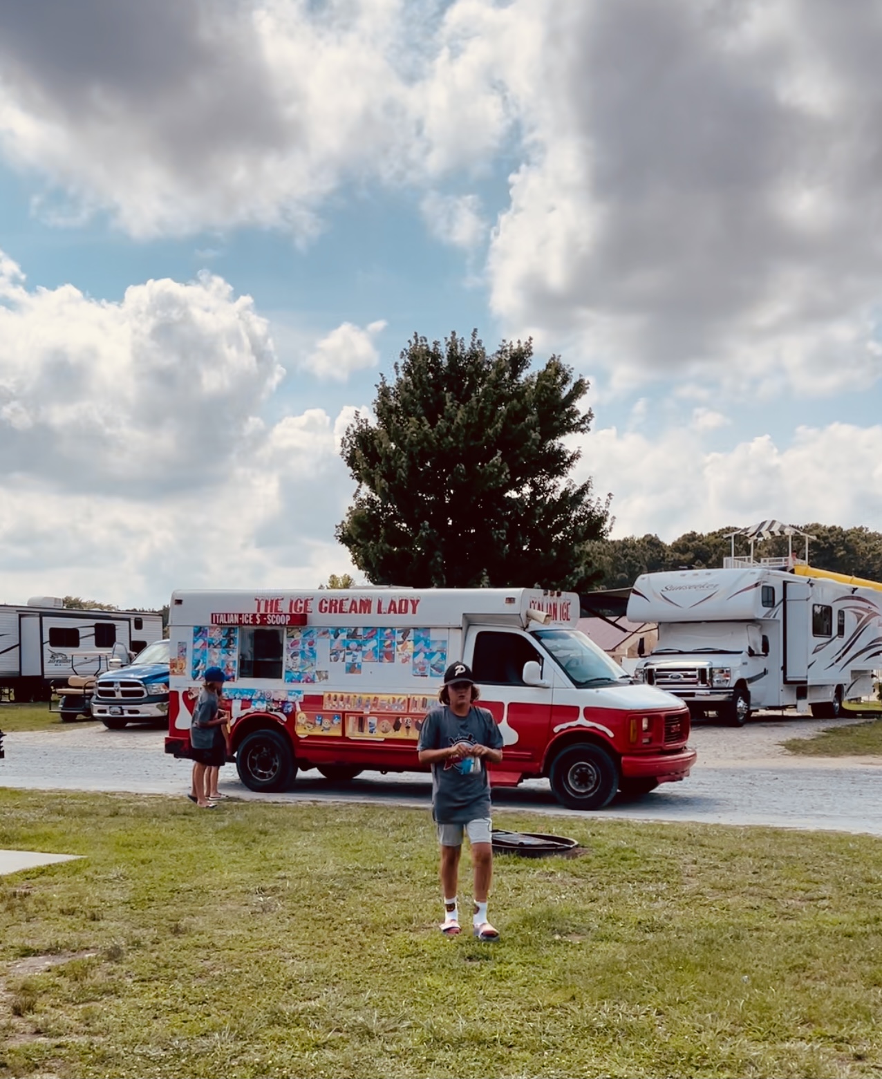When we first pulled into the Jellystone and checked into our cabin the boys were thrilled to hear the happy sounds of an ice cream truck driving around the campground and selling its wares!
