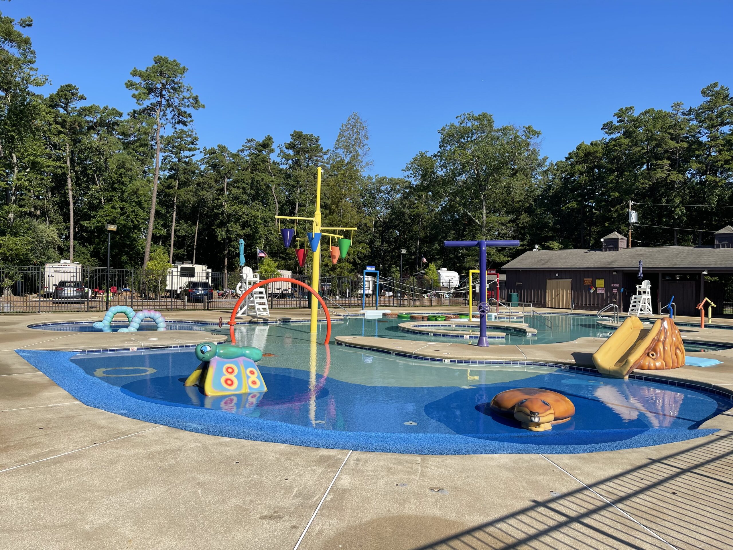 The second pool is great for kids. There are fun obstacles and splash pad features, and there is even a whirlpool area where you have to make the whirlpool yourself by swimming around in a circle. Kids (and even whole families) were having loads of fun spinning around in a vortex of their own creation! This is also a “bring your own chair” pool. So don’t forget if you plan on spending some time here. Between the lake and the two pools this is a really terrific campground for swimming. it is possibly the best campground for swimming in all of New Jersey. So bring a towel, a lawn chair, and some suntan lotion and plan on staying for a while!
