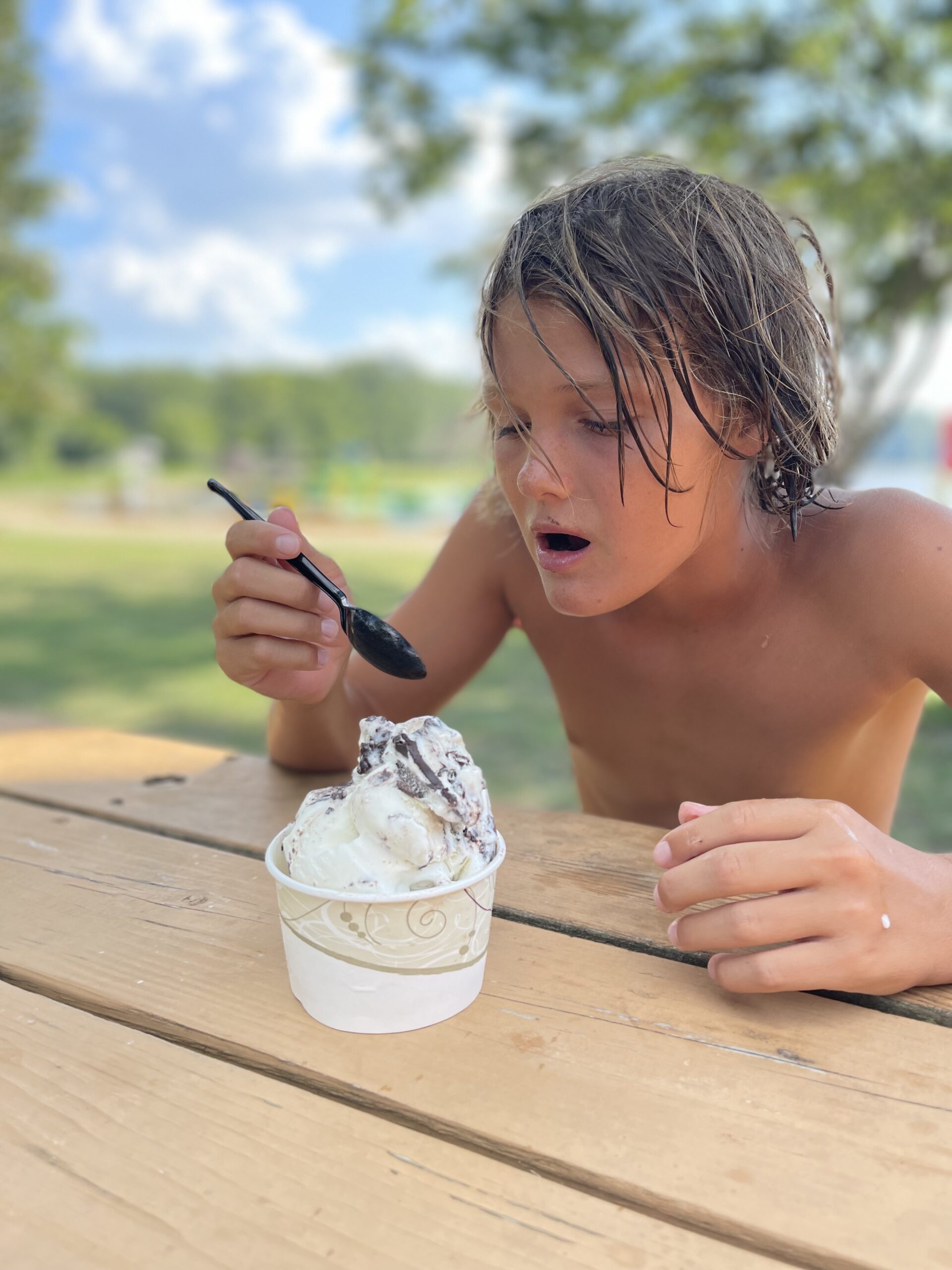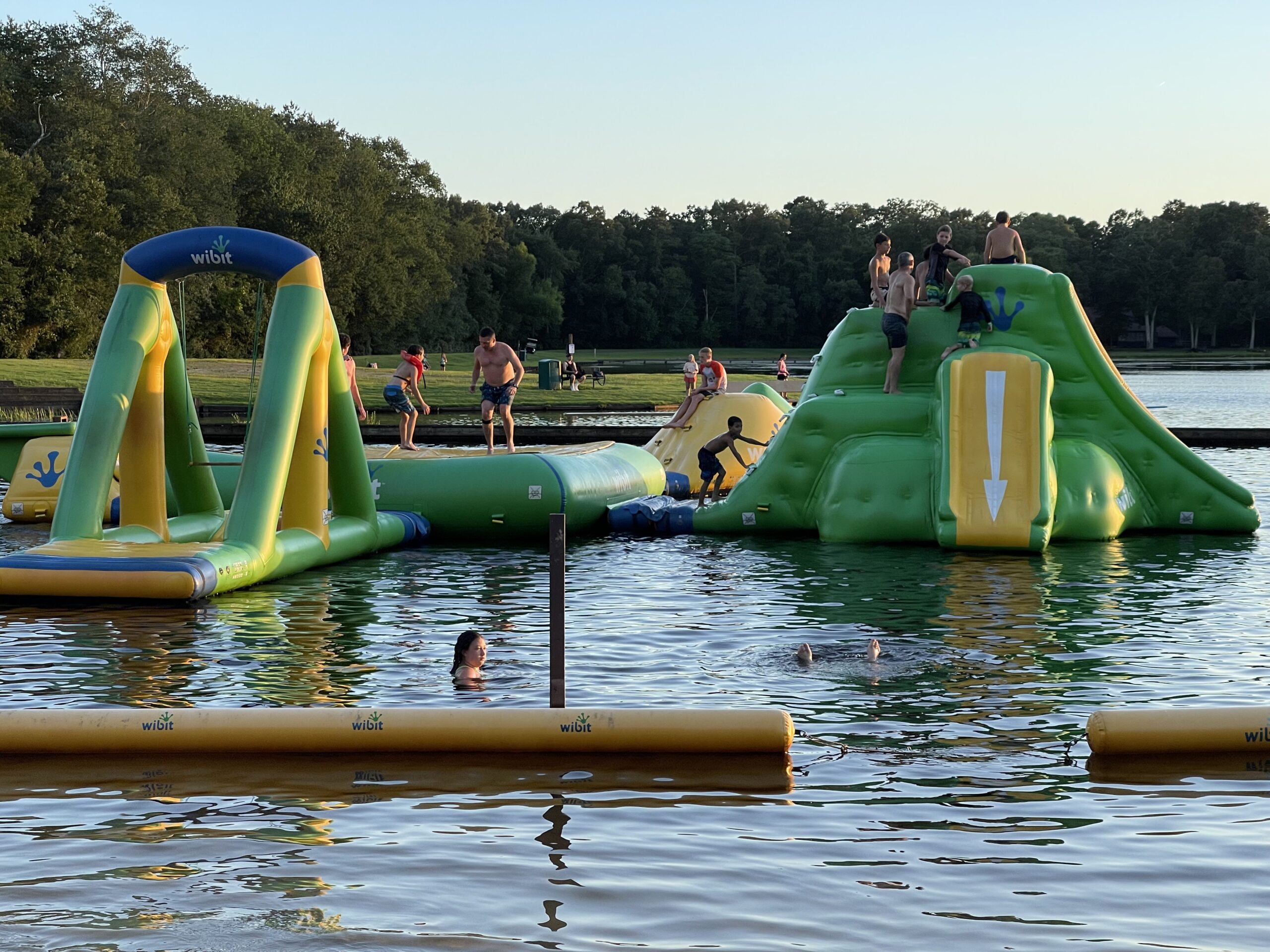 The well stocked camp store and snack stand (with walk up window) are right near the Wibit area. Families that are not grilling or eating their own prepared food can get burgers, dogs, chicken fingers, and more. The food is good and fairly priced. The service was also fast and friendly. Hand scooped ice cream is available here, and they dish up a variety of flavors with generous portion sizes.  It is a perfect set up for a day of fun in and around the water. Once you set up camp for the day in this spot by the lake there is really no reason to leave. You can easily spend the better part of a day right there.