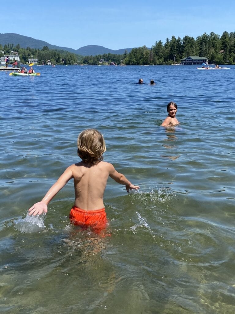 So, onto the fun stuff! We swam in Mirror Lake and had an awesome time. The water was warm enough and it was crystal clear. There was even lots of space on the Fourth of July! They also offer SUP rentals, but they were booked solid. Whether you rent or bring your own, you’ll find easy spots to launch.