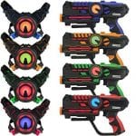 This Laser Tag set is another recommendation from our Facebook group! While a bit pricier than some other options in this category, this set received rave reviews for how engaging it is, especially when your kids have room to run.