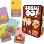Our RVFTA Facebook group gave this game several shout outs, so it’s been on our wish list. Then we actually saw a family playing it as we walked through the airport last week. Serious Sushi Go FOMO happening over here.