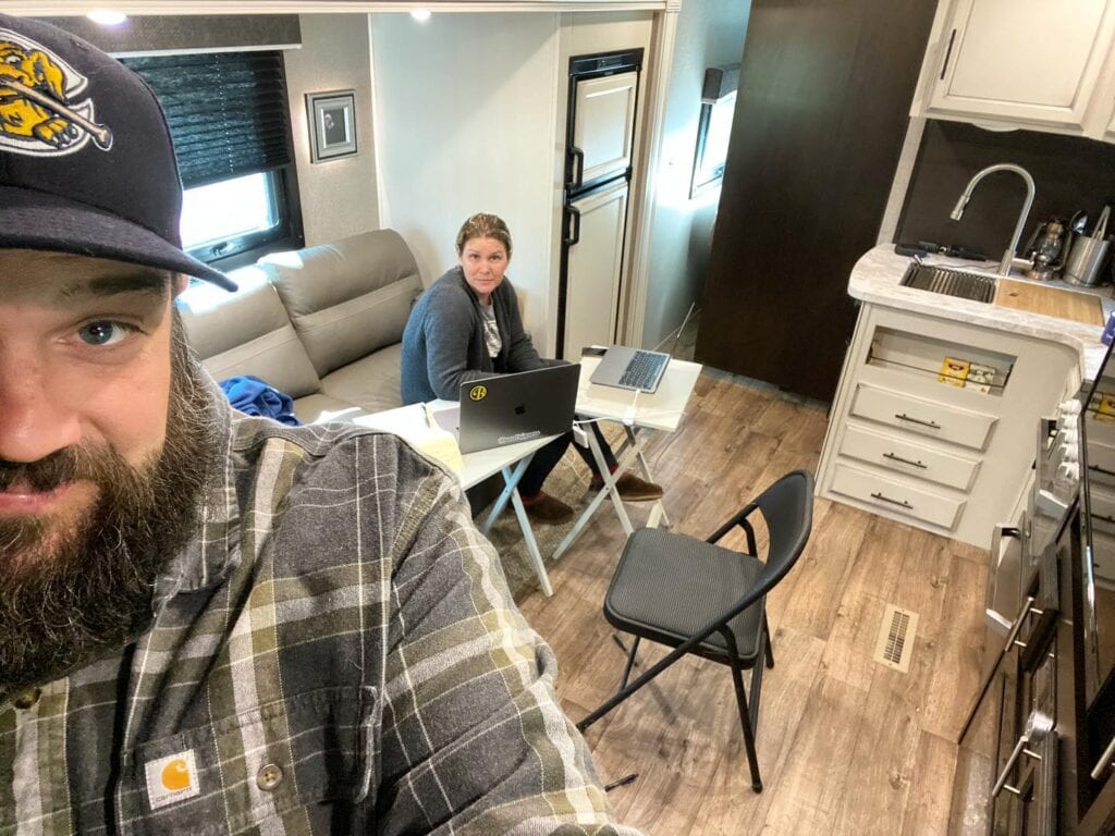 We’ve turned it into an office, complete with a wifi hotspot, table, and, most importantly, PEACE and QUIET. It’s nice to have that separate space to concentrate in, as needed, especially as we took turns finishing up our third book. We are so thankful to have our RV in our driveway.