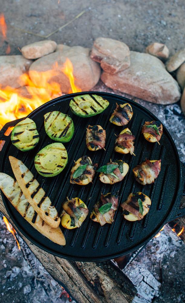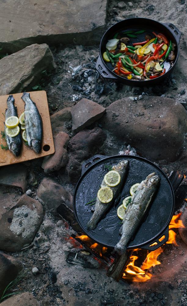 The 14-inch griddle is perfect for making big breakfasts at the campground. Think eggs, bacon, pancakes, French Toast. Then give the griddle a quick rinse and dry it off so its ready for lunch or dinner. Keep it classic with grilled cheese for the kids at lunch, or be a bit more adventurous and cook up your daily catch with Lodge’s “Fire Roasted Trout Recipe.” No matter what you use it for there will be room to feed the whole family, and maybe a couple of friends.
