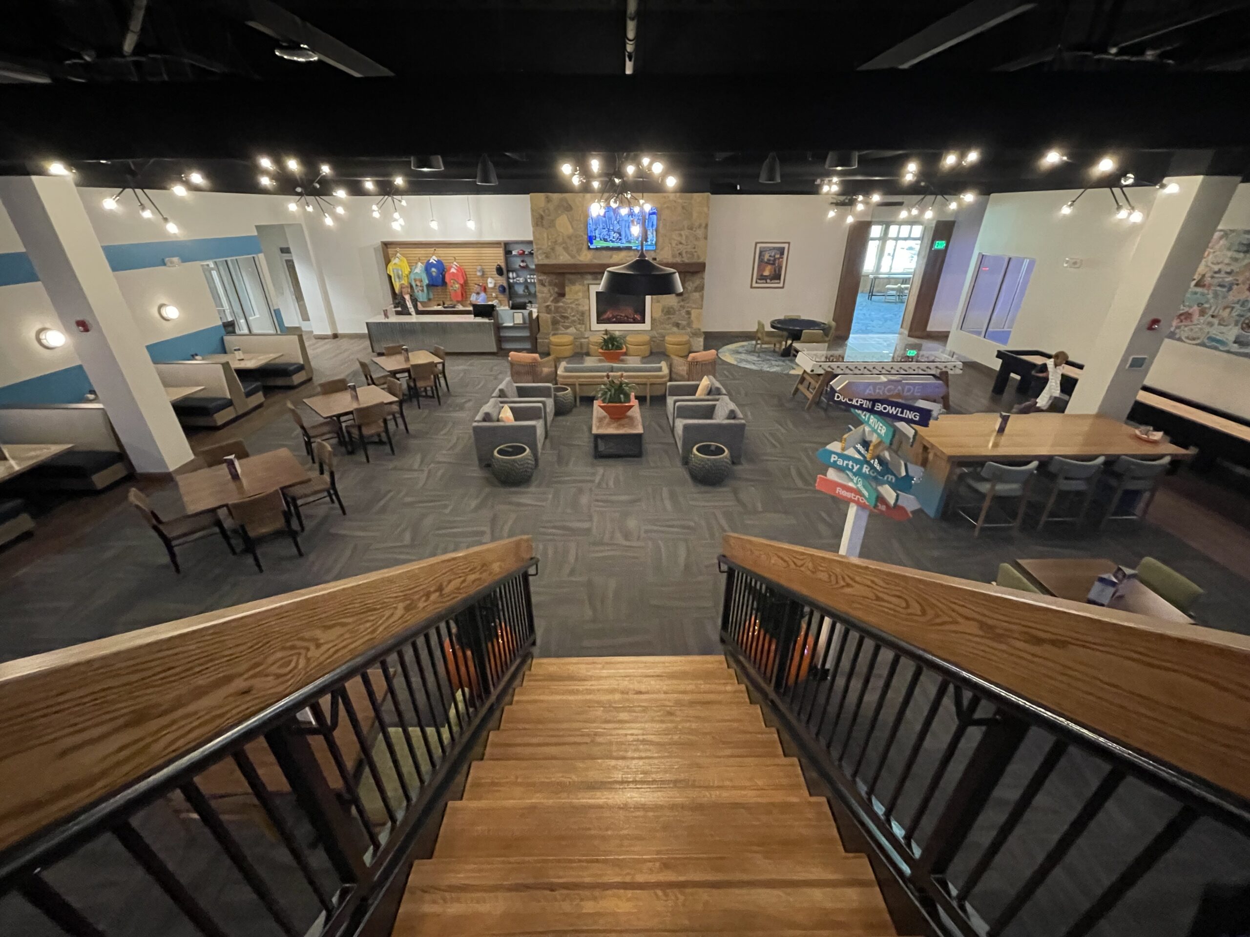 The coolest part about the lodge may be the Fin City Entertainment Center located just downstairs from the main lobby. There is another bar down here, and more options for food–collectively know as the Feeding Frenzy Snack Shack and Bar. They also have Duckpin Bowling, tabletop shuffle board, and an entire separate room filled with pool tables. There is so much to do in the lodge and so many areas for fun indoor recreation. This makes Camp Margaritaville a great place to be on a rainy day. We don’t like rainy days on vacation–but spending one here would be just fine.