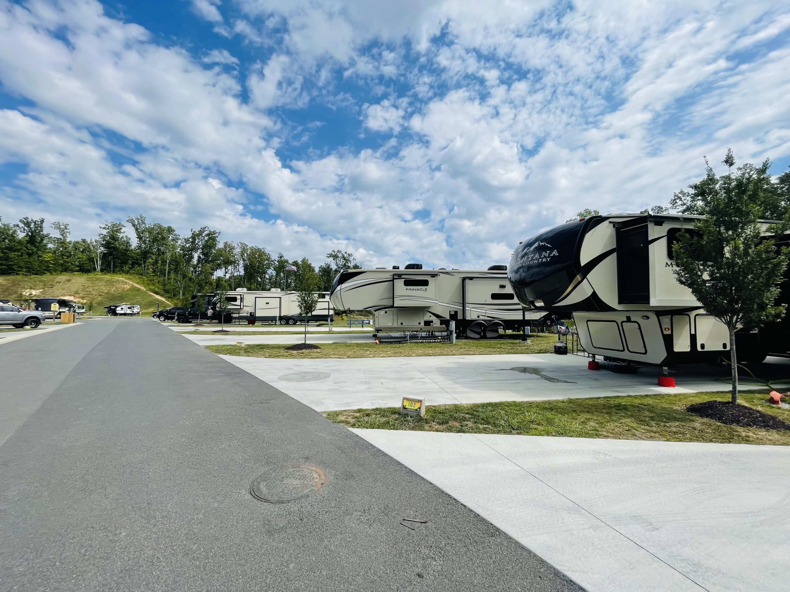 The RV resort at Camp Margaritaville Pigeon Forge is shiny new and super clean. We also found the sites to be very good. The concrete pads were level and the grass and landscaping were lovely. There is not much shade now, but that will improve as the newly planted trees take shape. We also found the sites to be generously sized, though none of them were gigantic. There are sites that are a short walk away from the lodge, for those that want peace and quiet. There are also sites just steps away from the lodge if you want to be close to the pool and other amenities. Some of the sites have steep drop offs behind them. These sites are pleasantly situated, but those camping with small kids should avoid them. The roads throughout the resort are easy to navigate and backing into your site should be easy–even for a big rig.