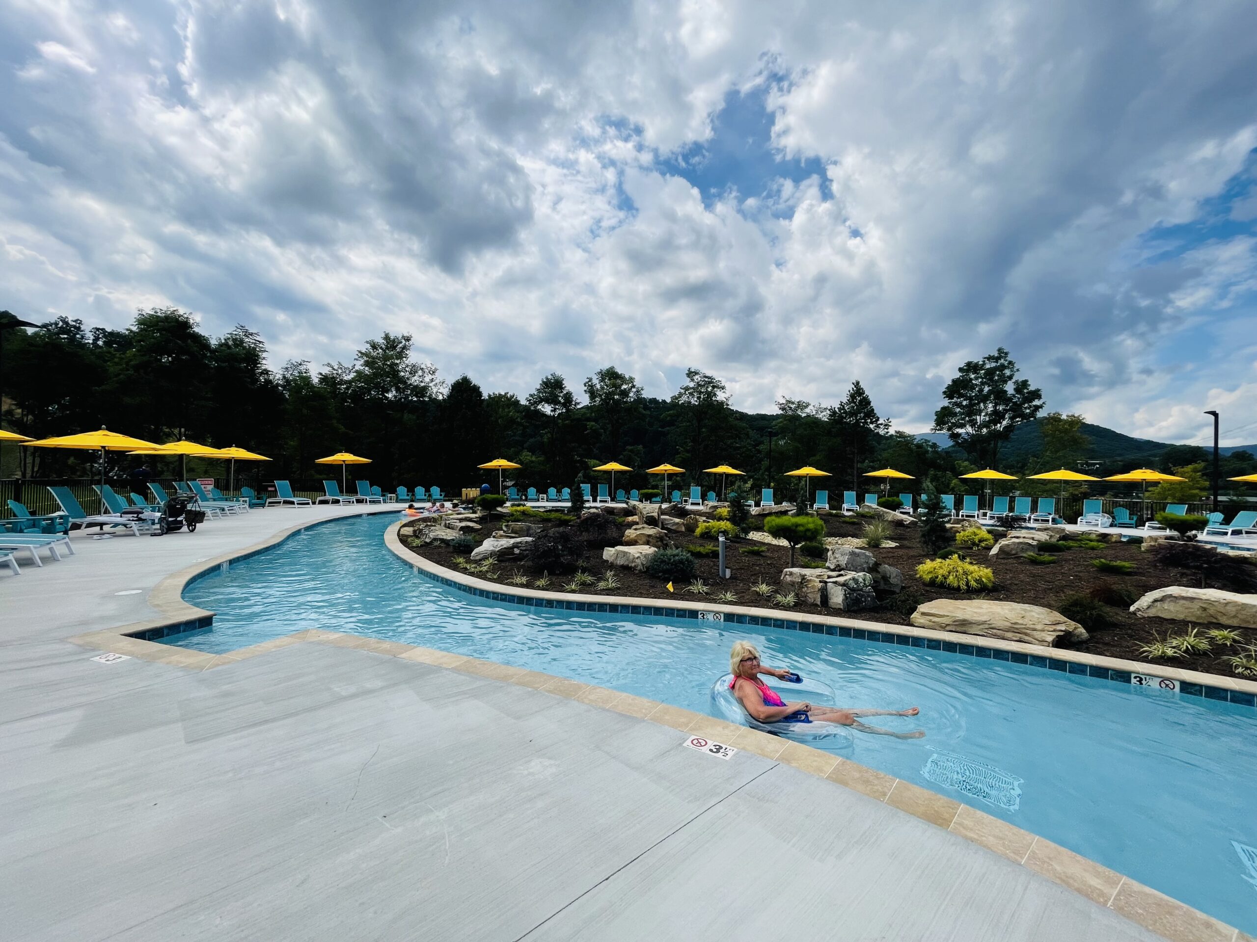 The lazy river is in a separate section of the property, located just behind the lodge. At first you might think that it is odd to have them separated. But we think that the design is very intentional. The lazy river was calm and peaceful. There were no kids splashing around and ruining the relaxed vibe. Kids are allowed here, but this area really seems to be catering to adults who want to earn their license to chill. Both of these areas are really terrific, with views of mountains ringing the property. You would be hard pressed to find better swimming options at a campground in the Pigeon Forge area. Please let us know if you do.