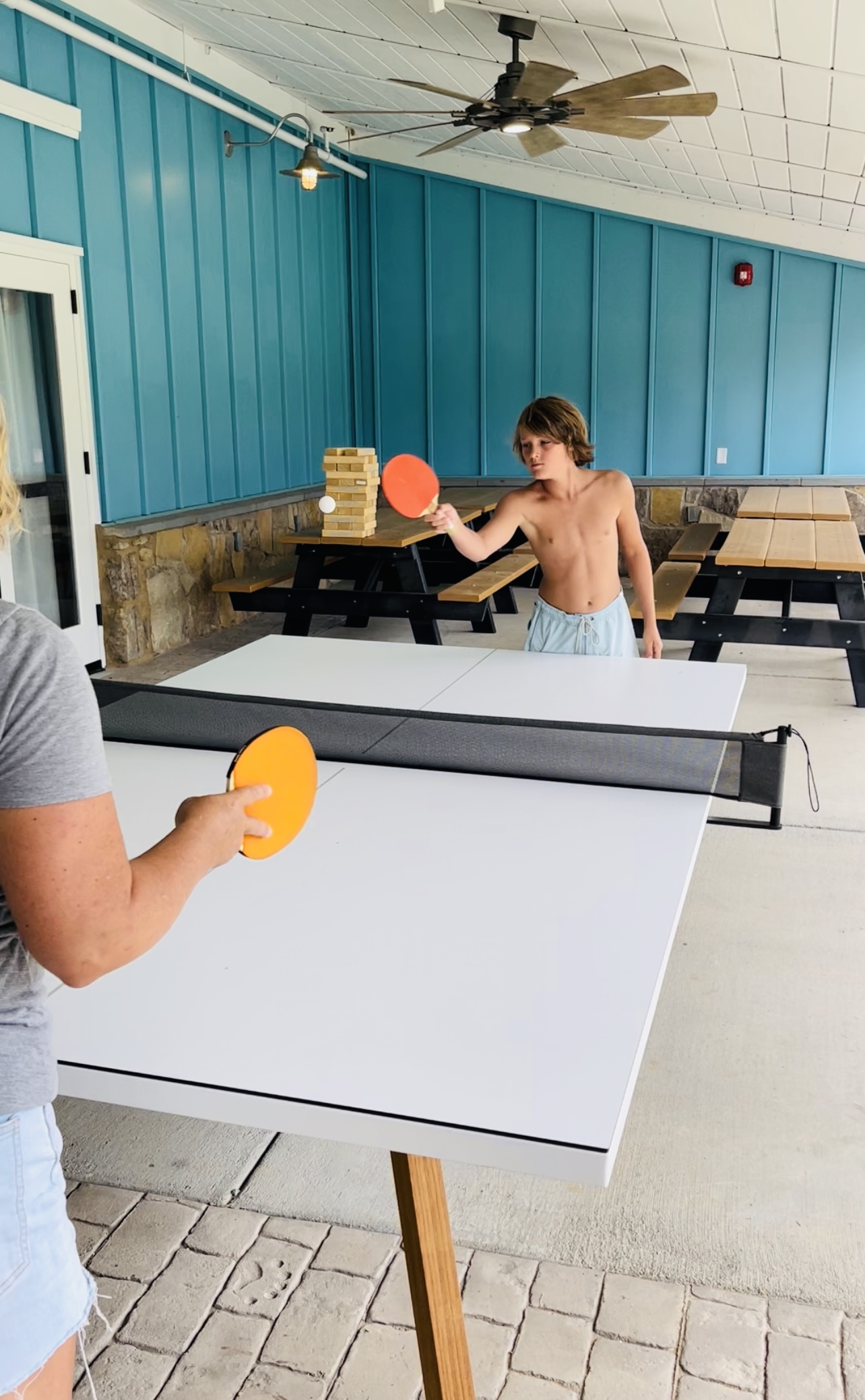 Behind the lodge near the lazy river there is an activities lawn that is also filled with fun options for recreation. We loved playing ping pong here before and after dinner. This area also has a communal outdoor fire pit and games like volleyball and Ga Ga Ball. Live music is also offered in this area on the weekends. Check at the front desk of the lodge for more information and show times.