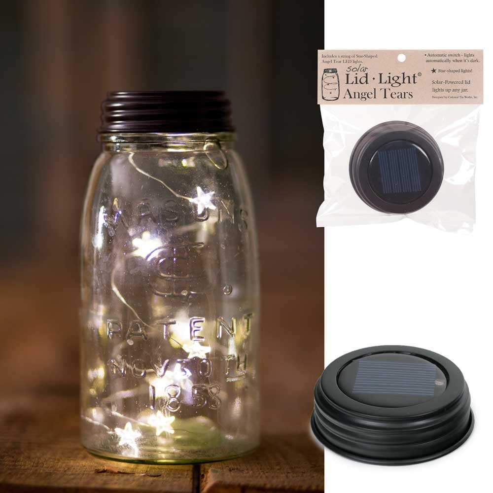 These Angel Tears lids fit onto any standard mason jar, and they are solar powered. We bought them a few years ago and they are still working perfectly. People ask us for the purchase info every single time the mason jars appear in a picture on our social media channels. They definitely make things look more magical at the campsite.