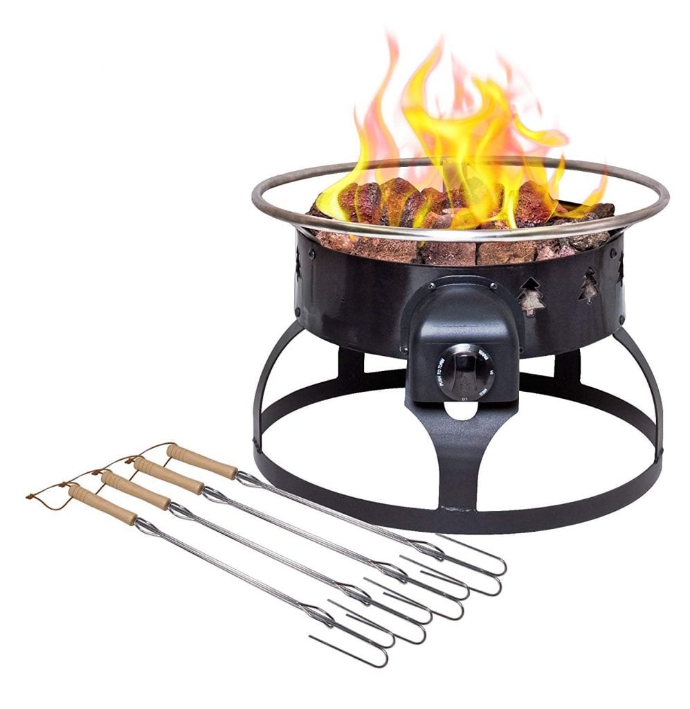 It took us awhile to figure out why people would want to cart around a propane fire pit instead of just using the ring provided at the campground. Then we experienced the magic for ourselves. Propane fire pits can be easily turned on and off, so you don’t have to commit to hours of tending the fire. You also avoid breathing in the smoke and carrying around that campfire smell for days. This particular fire ring comes with a carrying case, four roasting sticks, a regulator, and six-foot hose. 55,000 BTUs will keep you plenty warm on chilly nights.