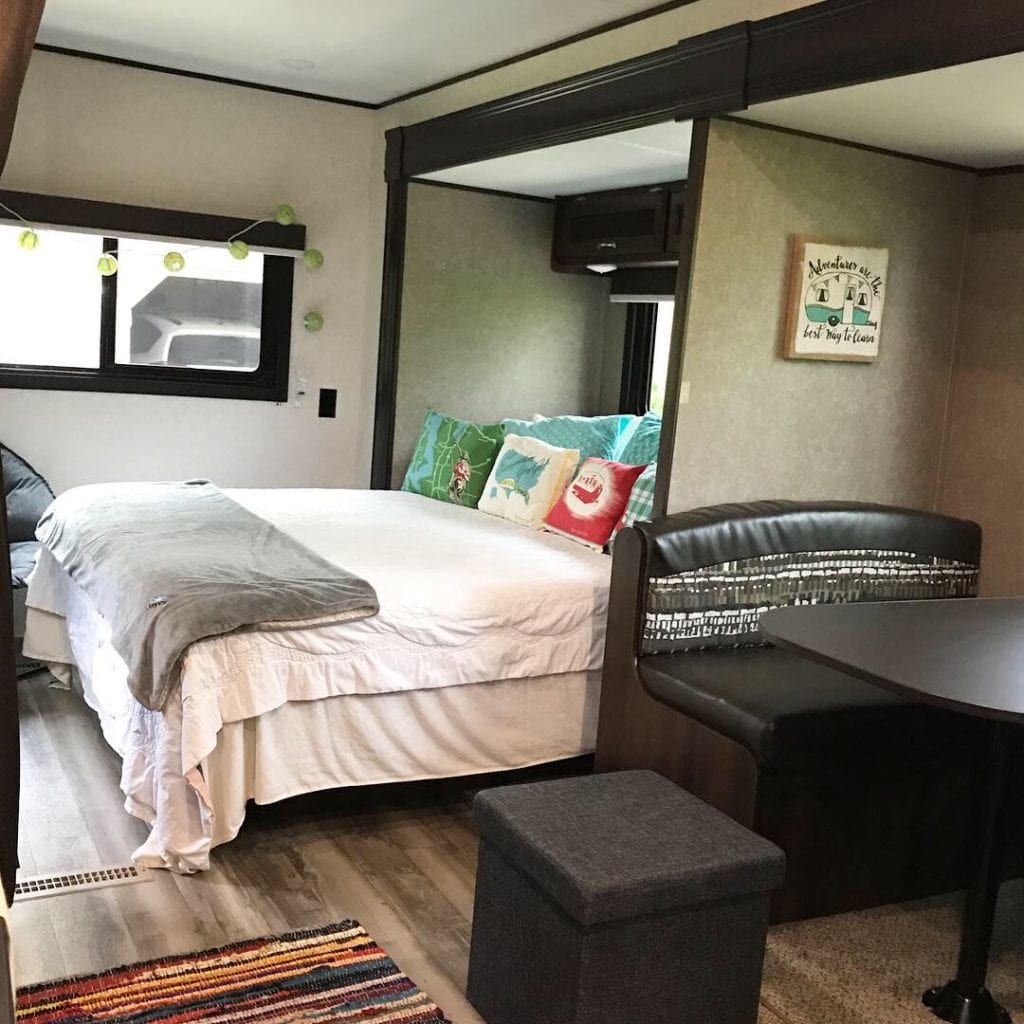 In the summer of 2014, Kerri and her husband, Russell, found a 2012 Jayco 184BH on Craigslist and knew it was just perfect starter rig for them (this floor plan has been replaced by the 174BH). Over the course of 5 years, Kerri’s family hauled this RV over 15,000 miles as they road tripped around the country each summer. They sometimes spent as many as 25 nights in it on a single trip.