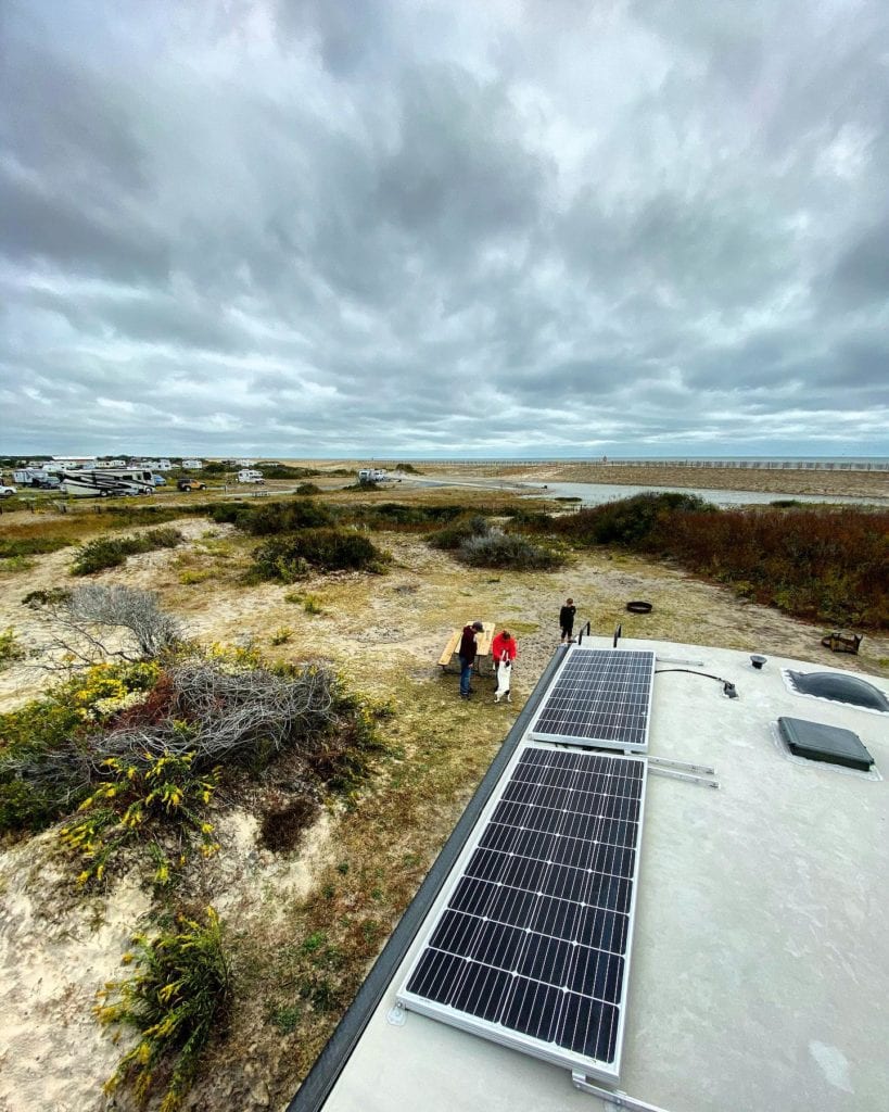 One of our very favorite modifications on the Octane was a generous solar power system and we would never want to give that up. The Eagle HT 264BHOK comes with rooftop solar prep and solar on the side prep. We have two 190 watt rooftop solar panels, four batteries, and an inverter. It’s not as powerful a system as we had on the Octane, but it’s enough to keep us comfortable while dry camping.