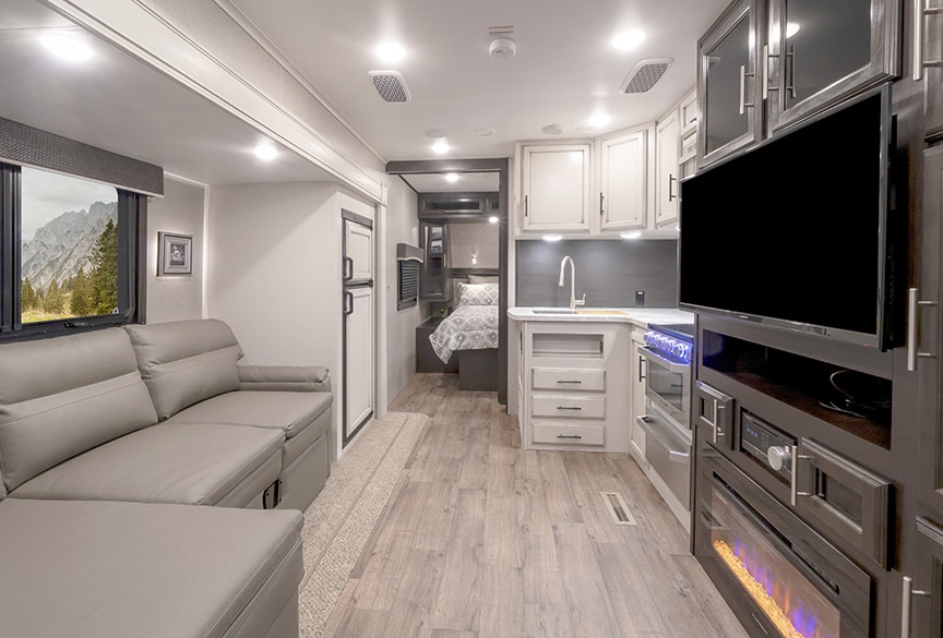 We have been telling people for years to always check out what happens when you close the slides on a new RV before you buy it–instead of getting an unpleasant surprise after you purchase it. Some folks end up disappointed when they discover that they can’t access their bedrooms or bathrooms when the slides are in during travel mode. We have always preferred to know before we go.