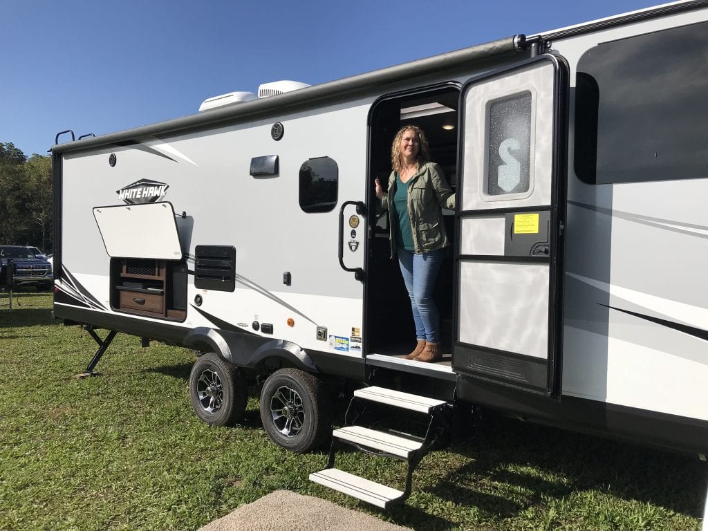 The White Hawk line has moved away from the linear exterior graphics package offered in 2018. This year’s graphics package is subtle and refined and would look gorgeous hitched up to a black or silver truck. A truck just like my 2017 F-250.