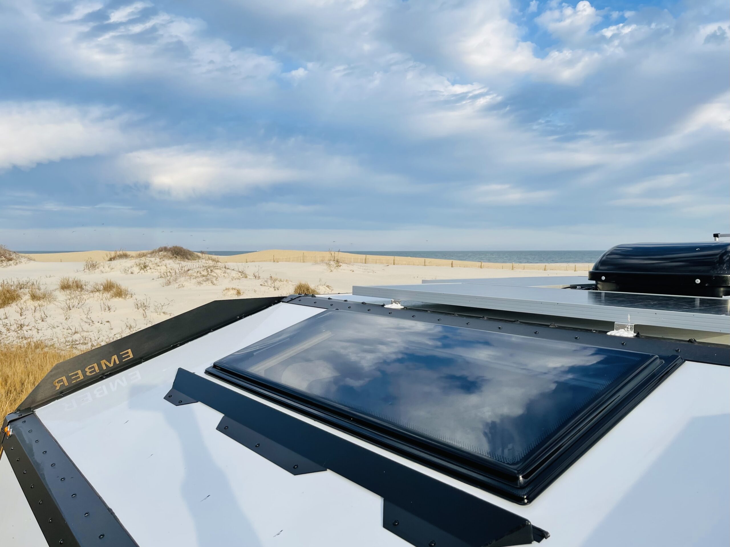 Kevin and I ended up having a perfect day of camping at Assateague. The new Ember Overland 191MDB has Ember’s “max solar package” on it, and the rig performed like it was plugged in, even though we were dry camping. I made coffee several times using an electric kettle for hot water, and I will not be using that next time I dry camp. It used up a good bit of battery. Next time I will bring an old fashioned kettle and use the stovetop burner to make hot water for my French Press.My last rig spoiled me a little because it had an onboard generator, which I used to make coffee in the mornings. The generator would always charge the batteries up in the morning and keep them topped off while dry camping.