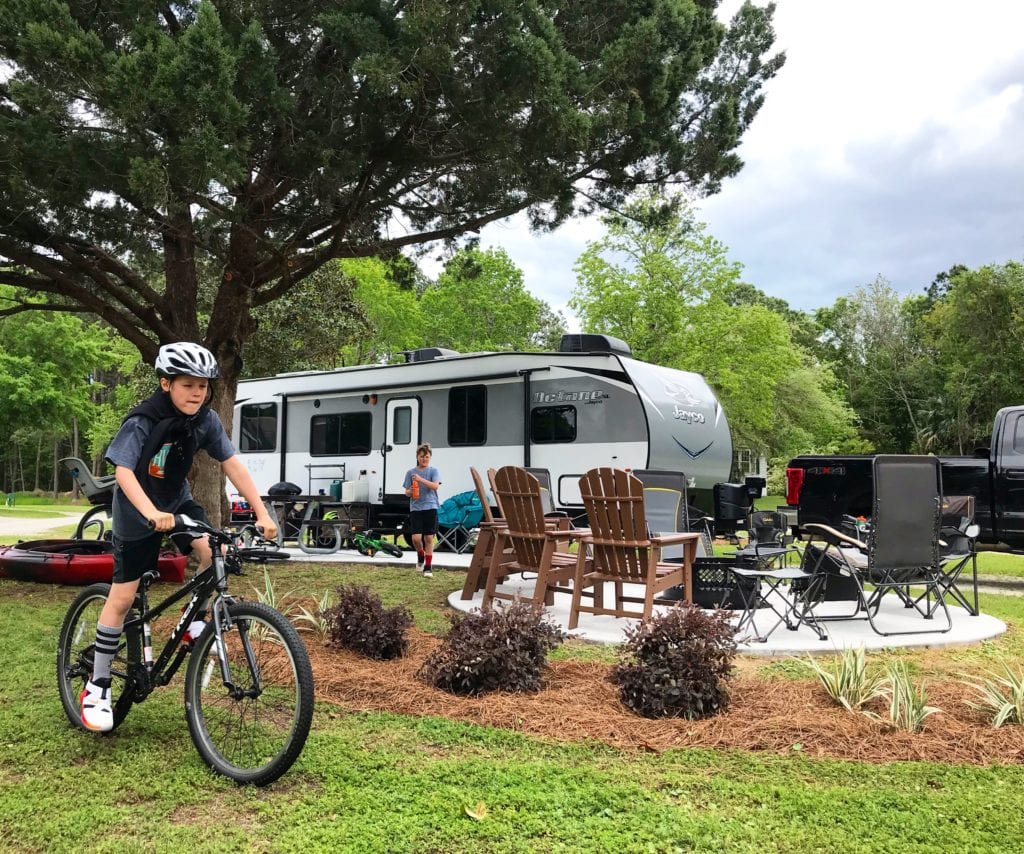 We always love Charleston. It’s one of our favorite cities, but this year, we had such a great time in the Mount Pleasant/Charleston KOA that we didn’t even feel like we had to venture into the city. This campground was the perfect place to relax in the sunshine and have some downtime as a family. The boys could explore on their own, and they had so much fun in the campground.