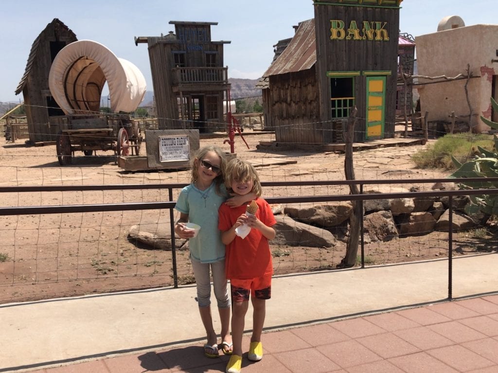 The town of Virgin is another good stop. Lauren recommends Fort Zion Restaurant. There’s a fun area for the kids to explore outside: