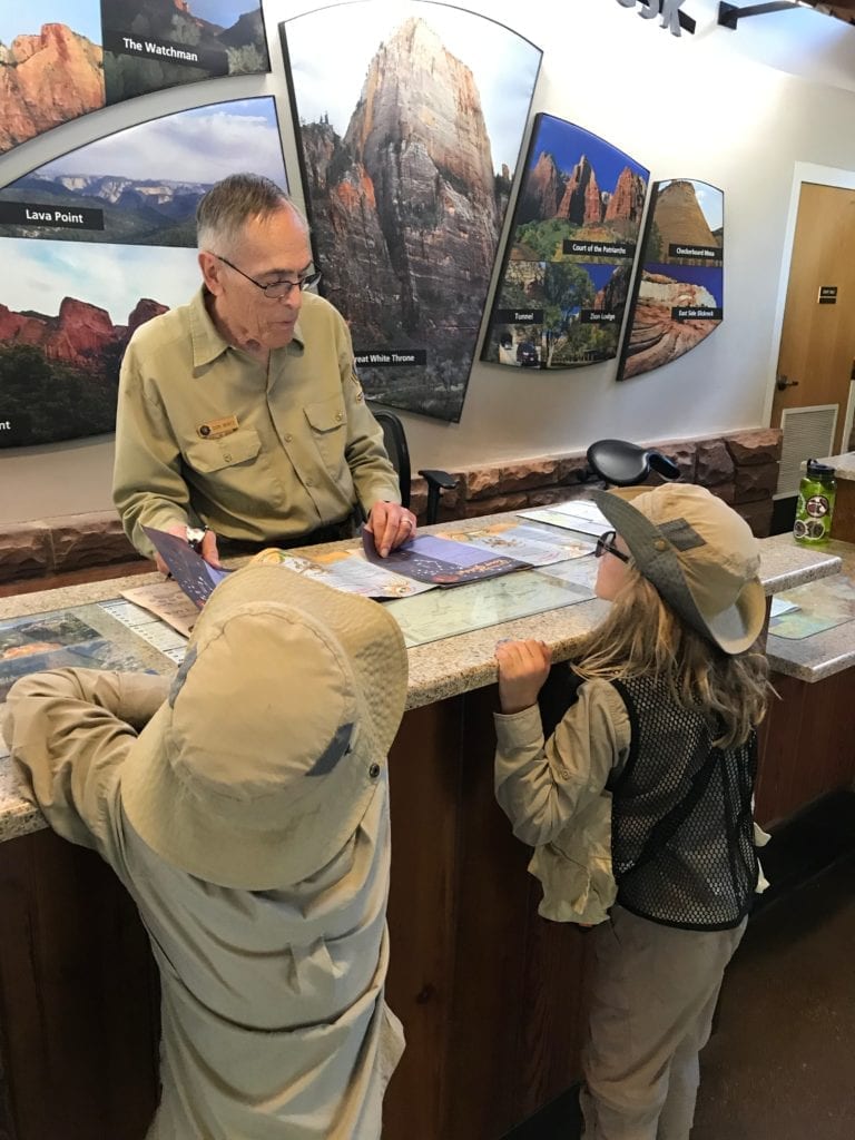 Start your journey to Zion with a stop at the visitor center. The Zion Canyon Visitor Center is a great place to get information. Since conditions in the park are always changing, it’s good to check on trail closures, water flow, rock slides, and more before heading out. Be sure to pick up the information sheet and the complete map and guide to get all of the up-to-date info about wildlife, trails, and special events. You might encounter a line at the ranger’s station, but it is worth it. Don’t miss the Junior Ranger program info if you are traveling with kids!