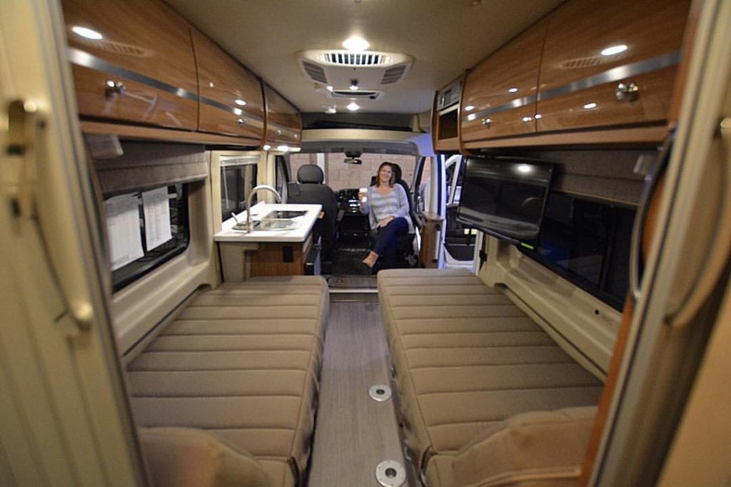 Ignore any sideways looks and sit on that toilet. Also make sure you can stand in the shower. Imagine your entire morning routine, and decide whether it could happen in that space. Have little kids? Could you give them a shower or bath? Finally, close the bathroom door to get a better feel for the amount of space you will have. If you feel like it’s tight while shopping, imagine how you’ll feel a week into an RV vacation.