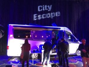 Leisure Travel vans always set hearts aflutter, but the Unity Rear Lounge really got people talking at RVX. It’s built on the all-new Sprinter Cab Chassis and includes the Dometic loT Touchscreen Solution system. The front of the van contains a L-shaped kitchen and seating area. The rear has a residential-styled sectional. Add in a Murphy bed and modern styling and you get a Class B dreams are made of.