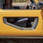 Johann pointed out some great features that Ford added to the Bronco. First, when you remove the doors on the four-door models, you can easily store them inside the vehicle. This is a huge difference from the Wrangler, which has nowhere to store the doors while you drive. Also, the side mirrors actually stay on the body, unlike the Jeep’s.