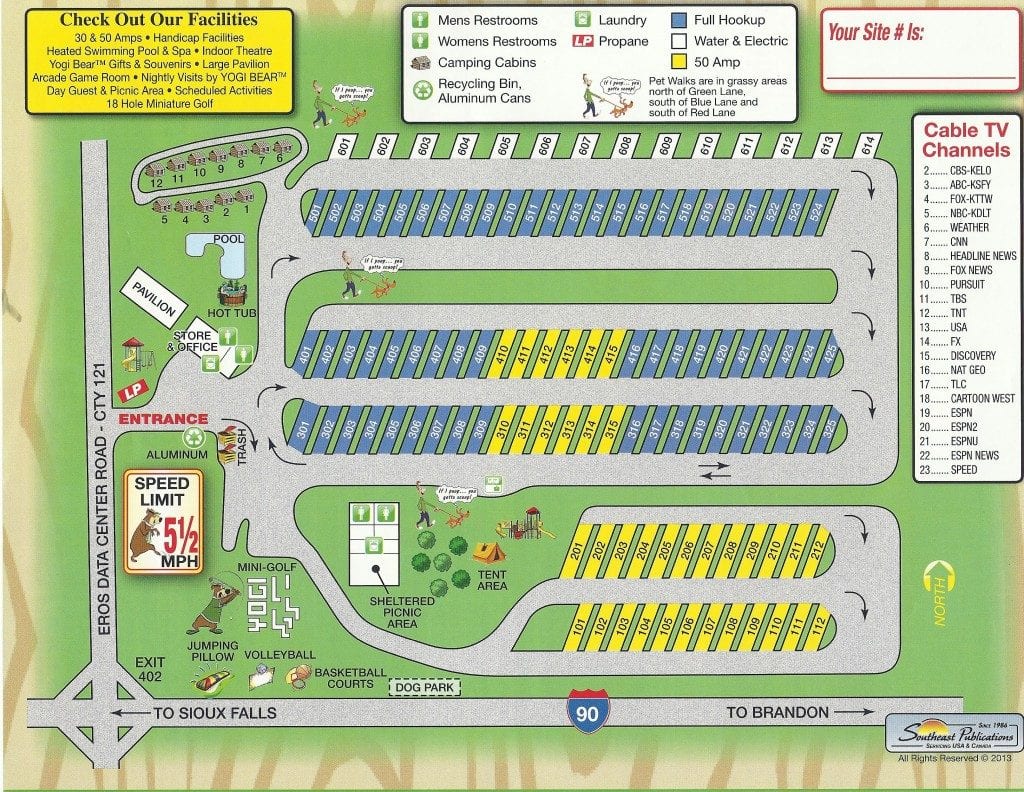 Sioux Falls Jellystone Park has a nice sized property with a variety of different sections. There’s a pretty large field between the highway (I-90) and the campsites, so you don’t feel like you are right on top of the road.
