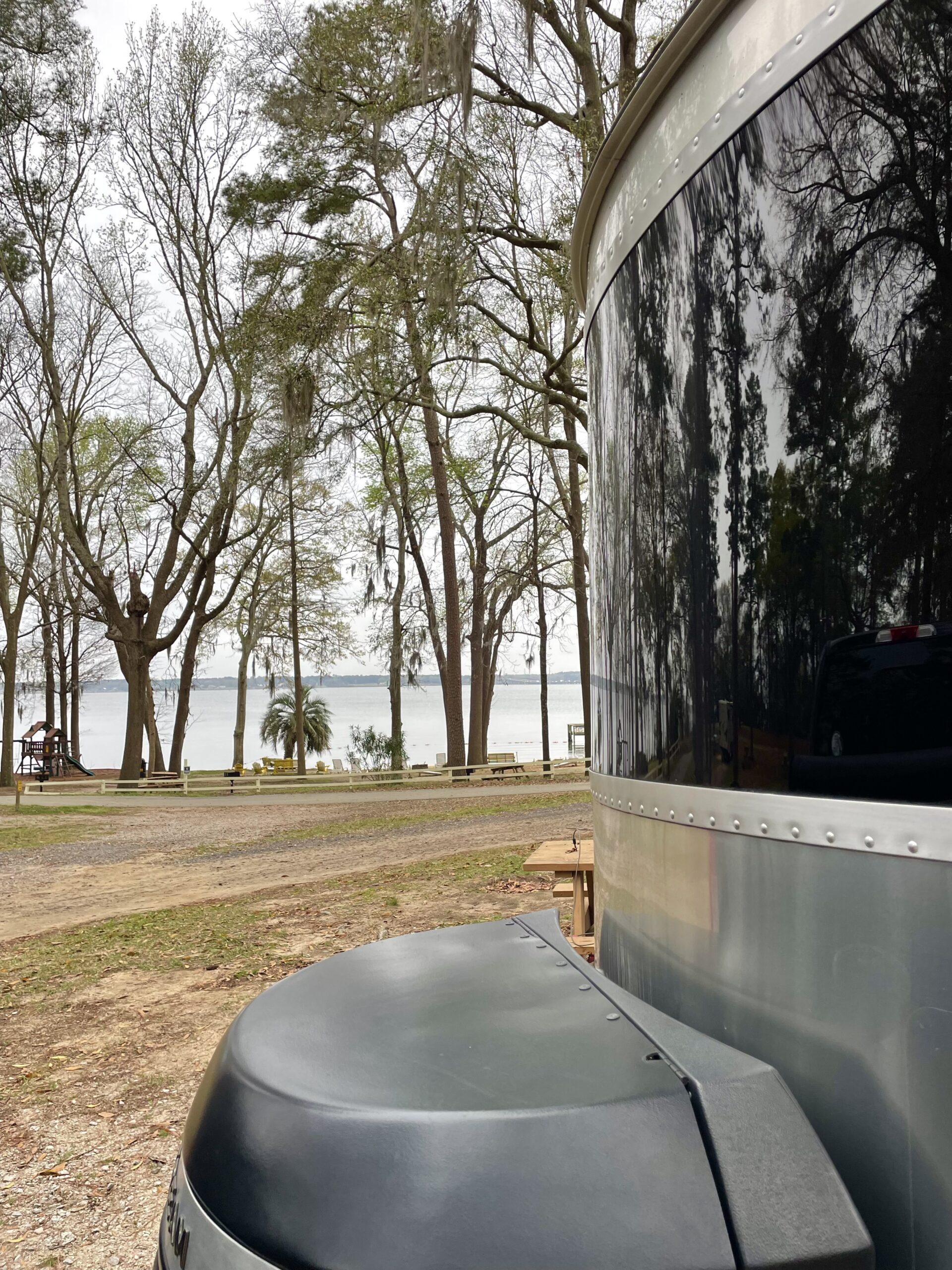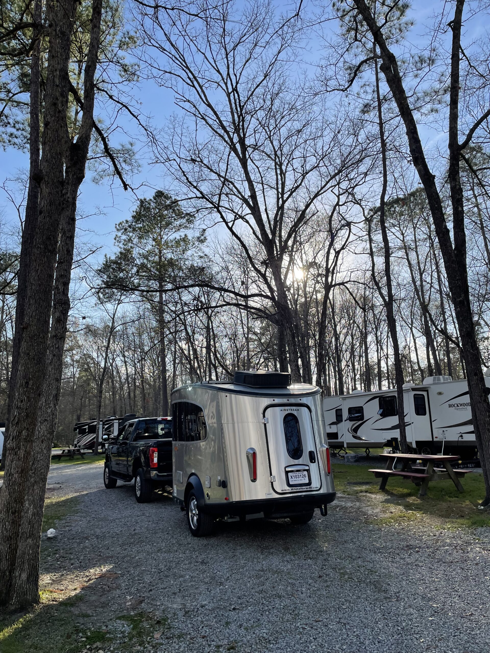 Thankfully, though preparations for the trip were rushed, Stephanie decided to take the driving somewhat slow. Live Oak, Florida is about 1,000 miles from our home at the Jersey Shore, and she broke it up into a bit over 300 miles each day. She didn’t want to push herself while towing the Airstream Basecamp, (which she does when she drives without towing). So she stopped at two places on the way down (Americamps RV Resort near Richmond, and Point South KOA in South Carolina) and two places on the way back up (Santee Lakes KOA and Americamps again.) Americamps is an old RV Atlas favorite stopover for trips down south. Basically, she wanted all of her stops to be very close to 95. She also wanted them to have pull throughs that allowed her to stay hitched up. Each stop worked close to perfectly. Here are her quick thoughts on each of these campgrounds, followed by some thoughts and lessons from the road.