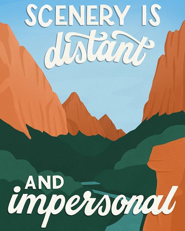 Amber describes the Subpar Parks project as a “snarky love letter” to our national parks. Where in the world did she get the idea for this? Last year, Amber was taking a course in hand lettering, and she was encouraged to dig into her own interests for an illustration project. She had always loved the national parks and wanted to do a series of illustrations of them.