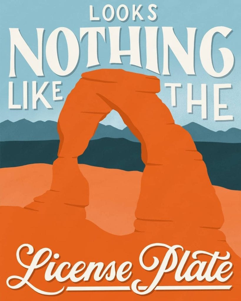 Amber’s first illustration was of Arches National Park. There was a review that said, “It looks nothing like the license plate.” This just tickled Amber’s funny bone. It was so meta! The license plate itself is an illustration, so how could the original not live up to it?