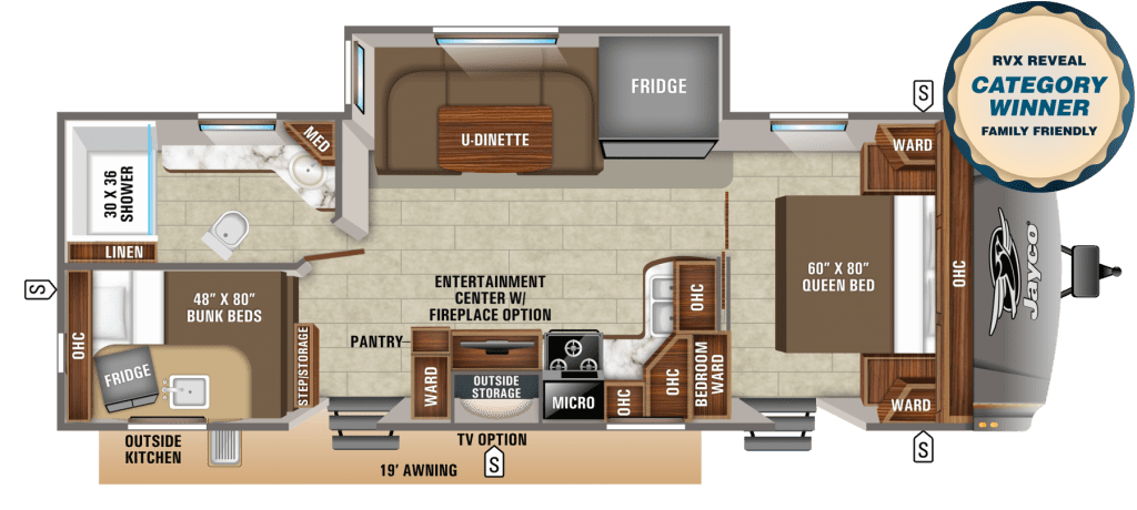 It’s official! Our 2019 Eagle HT 264BHOK won the Family-Friendly category at RVX! Join us LIVE with Senior Director of Product Development, Chris Barth as he highlights some of the winning features. #LetsJayco