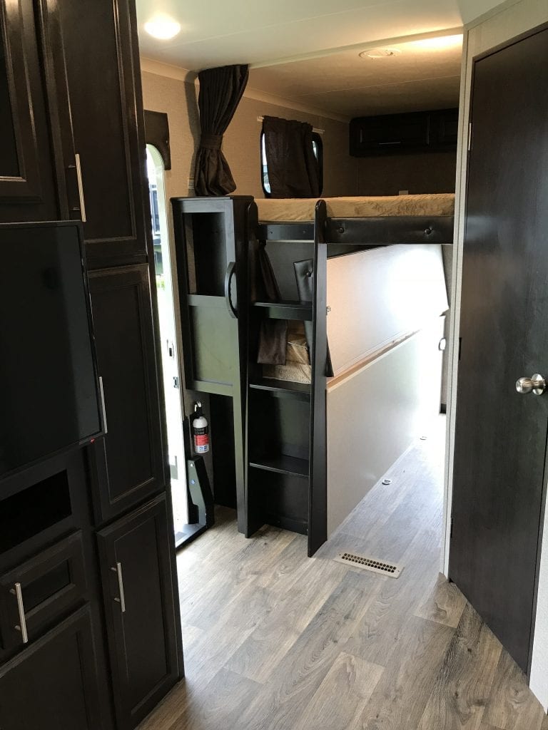 We love the rear cargo door on this Eagle. Our current Toy Hauler allows us to easily pack SUP’s, kayaks, and bicycles. If we ever sold the toy hauler we would still like to have some of that cargo carrying capability. The 264BHOK would give us the ability to still store our kayaks inside of the rig, inside of racking them on the truck or rear bumper of the RV. The Eagle’s bottom bunk flips up to create space to store those bikes or kayaks. The rear cargo door makes this kind of gear easy to get in and out. Everyone know that bikes and kayaks can be a pain to pack. Not in this Eagle.