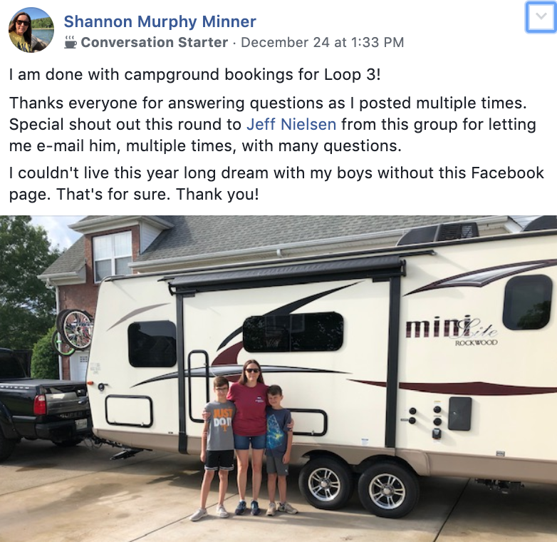 We love that the RV Atlas Facebook group is like our digital campfire, and we thank you for gathering around the campfire with us! As Justin said in the post below, “Camping and camping people are the best.” We are so happy that you all are our camping people!
