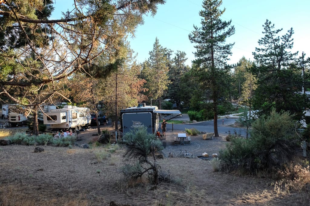 Tumalo State Park is just fifteen minutes from downtown Bend. It has full hook up RV sites for the bargain price of $36/night; they also offer tent sites and yurts for non-RVers. The park is right on the Deschutes River, so campers can head over to the day use area for fishing or tubing.