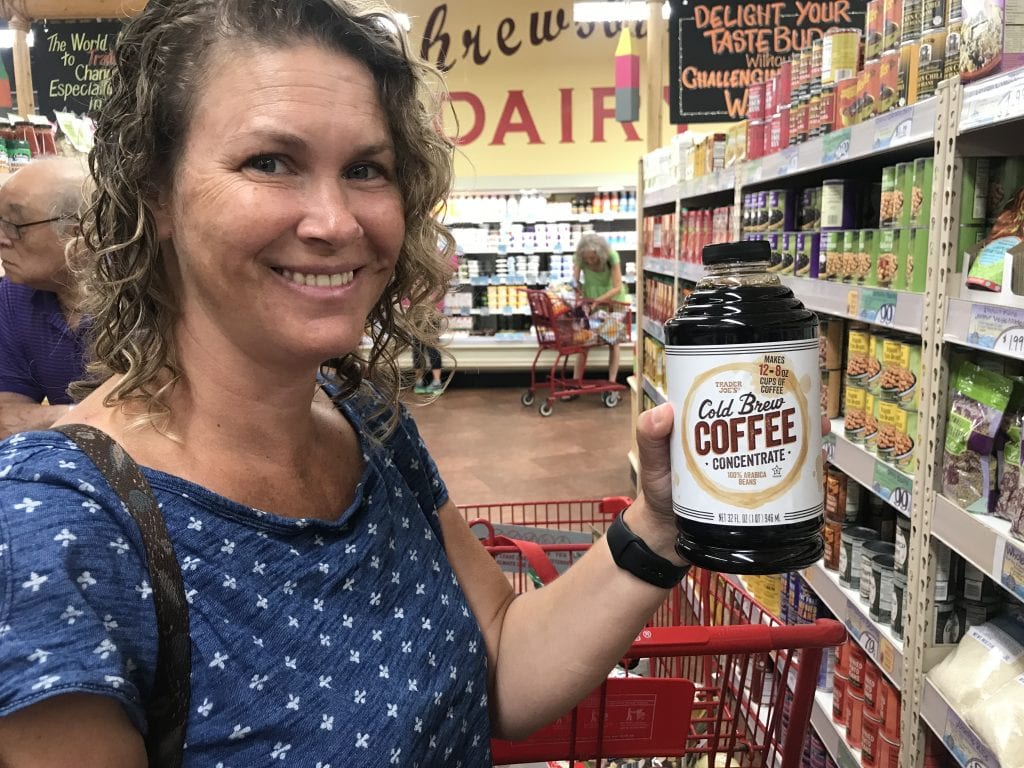 We never, ever leave TJ’s without at least one new item to try. On our most recent trip, we picked up their Cold Brew Coffee Concentrate. What a great idea for summer camping or dry camping. You can use the concentrate to make an iced coffee. Or heat water and add a bit of concentrate to make a cup of coffee that is so flavorful and robust. Beats instant coffee any day!
