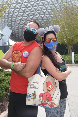 Johann and Lauren both felt that the Magic Kingdom still had the magic! They think that the park held the crowds (which were capped at 25% at that time) because there are just so many rides there to choose from. Ironically, the park still looked crowded because of the required spacing on the lines. They were also lines to get in and out of the stores. Character meet and greets are cancelled for the time being. But in their place are very cool character “cavalcades” where they characters come by in mini-parade fashion to entertain guests.