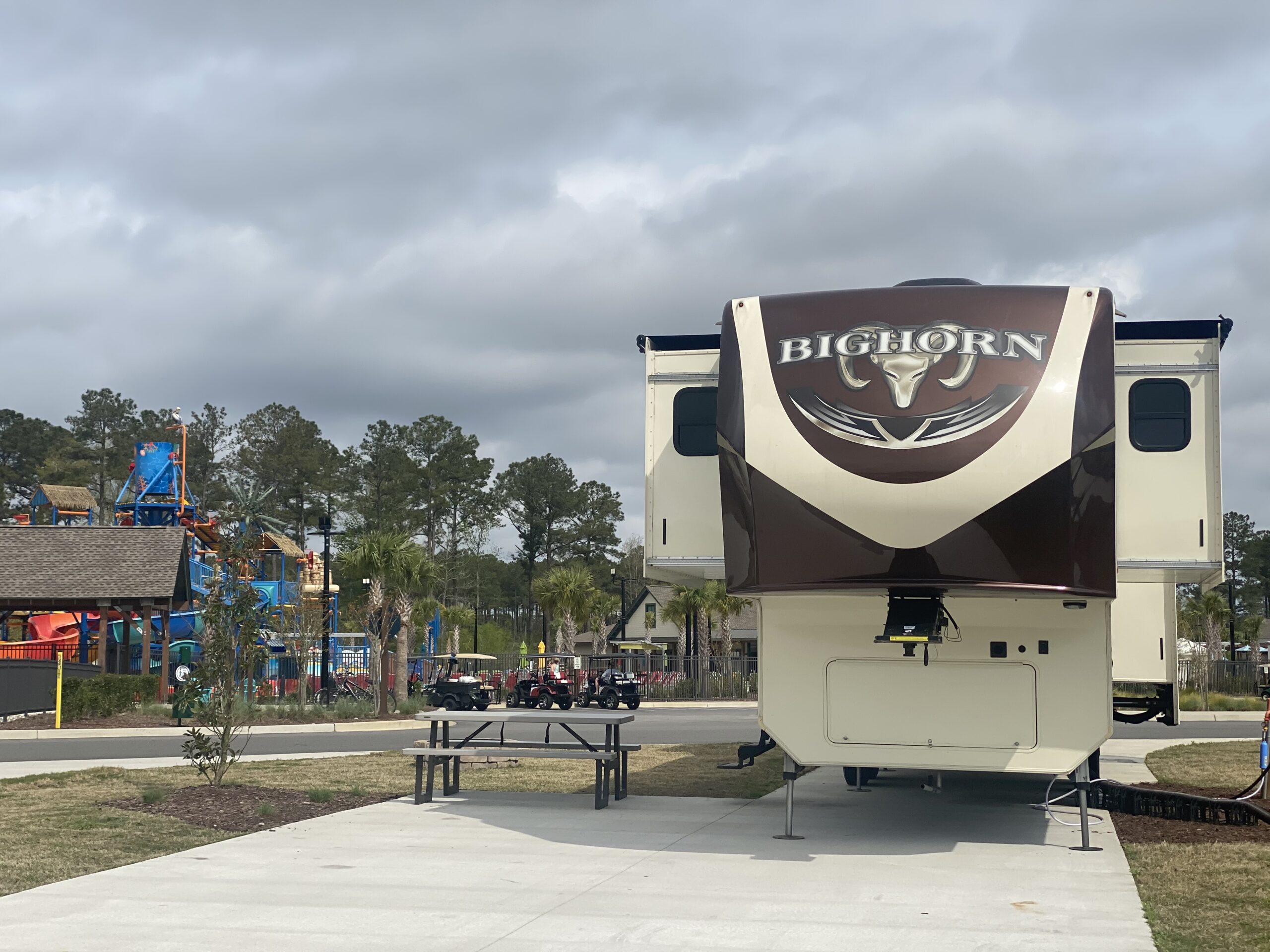 We are fresh back from a quick spring back trip to Carolina Lines in Conway, South Carolina and we had an amazing time and thank goodness–some very good weather! We made a last minute decision to head south for spring break and thankfully, we were able to find an available spot using Campspot. Jeremy is currently working as a Campspot ambassador and has been making reservations near and far using their online booking service. Our trip to Carolina Pines got us thinking about what qualities make an RV Resort a RESORT. A lot of campgrounds throw the word “resort” into their names when they really have no right to do so. Offering a pool and full hook up sites does not make a campground a resort.
